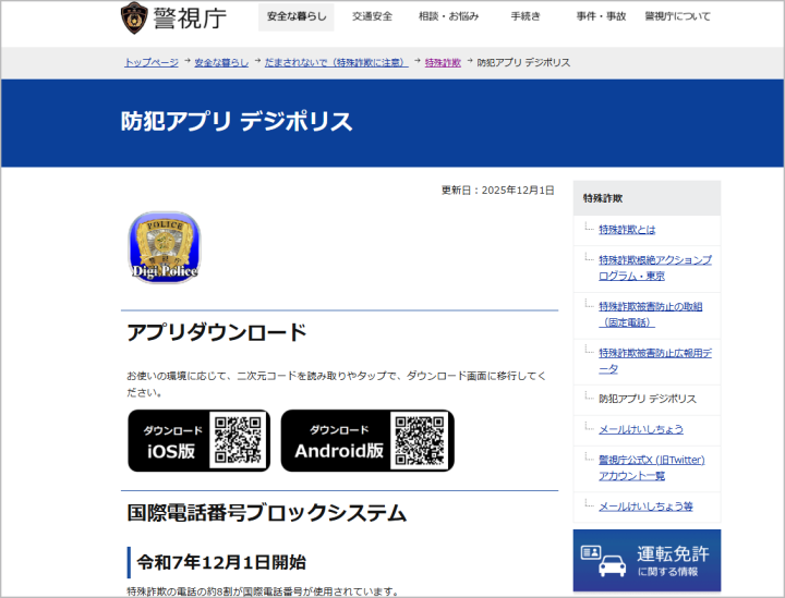 警視庁の無料防犯アプリデジポリスが2025年12月1日にアップデートされ、詐欺によく使われる「国際電話」や「犯罪に使われた番号」からの着信を自動でブロック(拒否)する機能が追加されました。現在「…