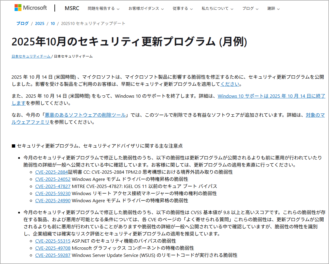 マイクロソフトは、2025年10月のセキュリティ更新プログラム(修正パッチ)を、10月15日(日本時間)に公開しました。修正パッチを適用することで、Windows11とMicrosoft Edge、…
